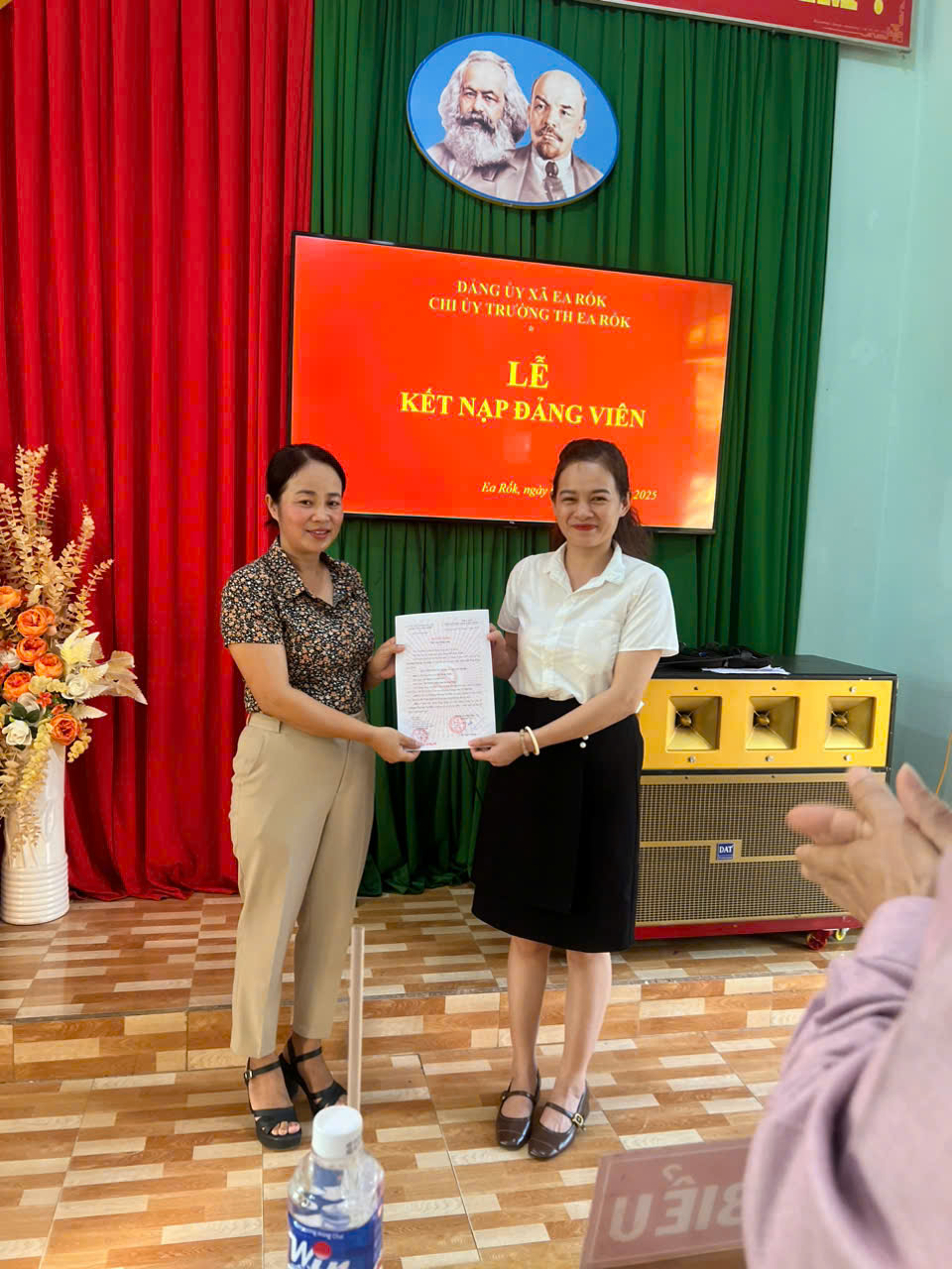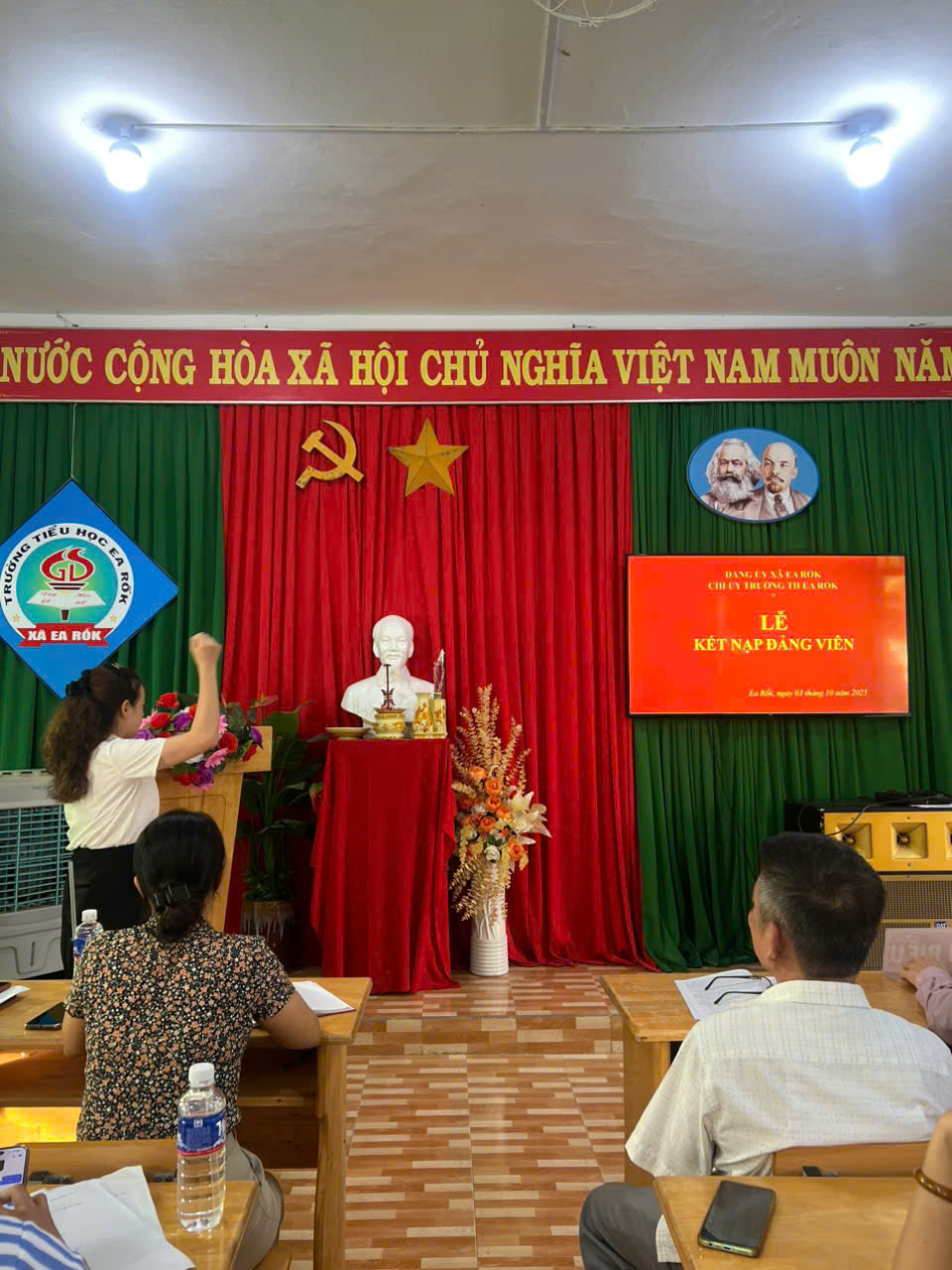 Thực hiện Quyết định số 124-QĐ/ĐU ngày 02/10/2025 của Thường vụ Đảng ủy xã Ea Rốk về chuẩn y kết nạp đảng viên. Ngày 03/10/2025, Chi bộ Trường Tiểu học Ea Rốk đã tổ chức kết nạp cho quần chúng ưu tú Hồ Trúc Linh vào Đảng Cộng sản Việt Nam.